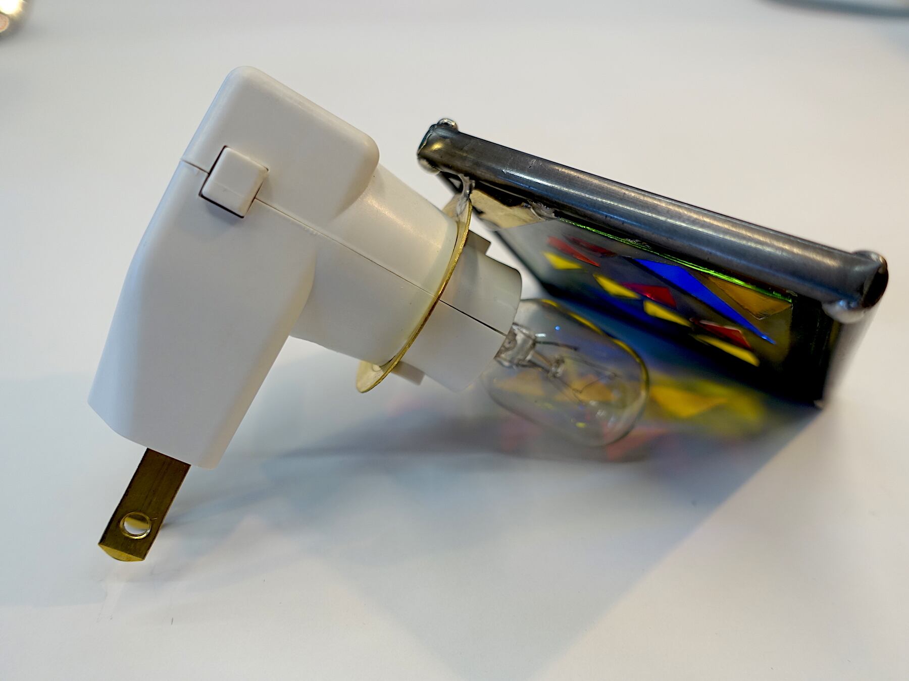 お部屋、廊下などのコンセントに差し込むだけで、ちょっとした灯が足もとを照らしてくれる、ステンドグラスモザイク仕上げのおやすみランプ!!