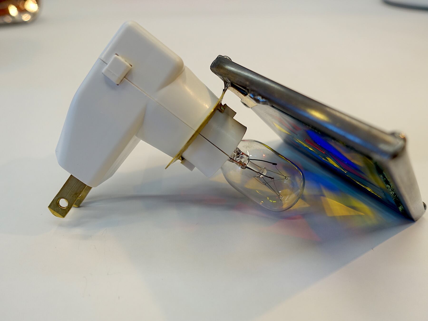 お部屋、廊下などのコンセントに差し込むだけで、ちょっとした灯が足もとを照らしてくれる、ステンドグラスモザイク仕上げのおやすみランプ!!